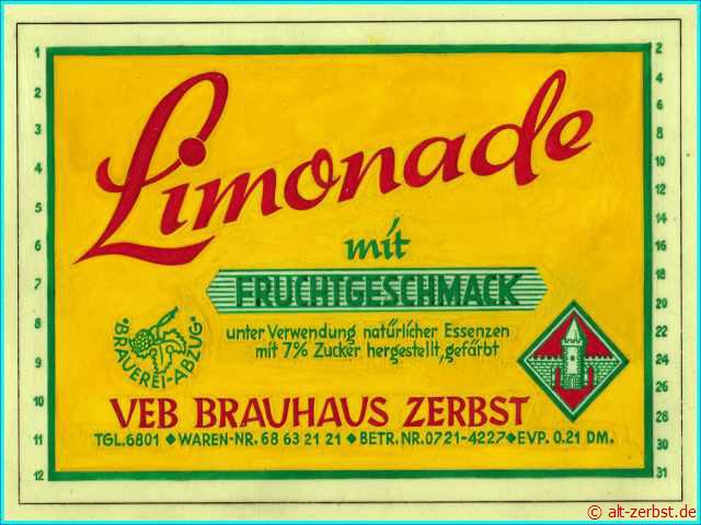 1974 zum VEB Getränke umfunktioniert und in Zerbst Zusammenschluss mit Fa. Schmidt und Fa. Petzold,