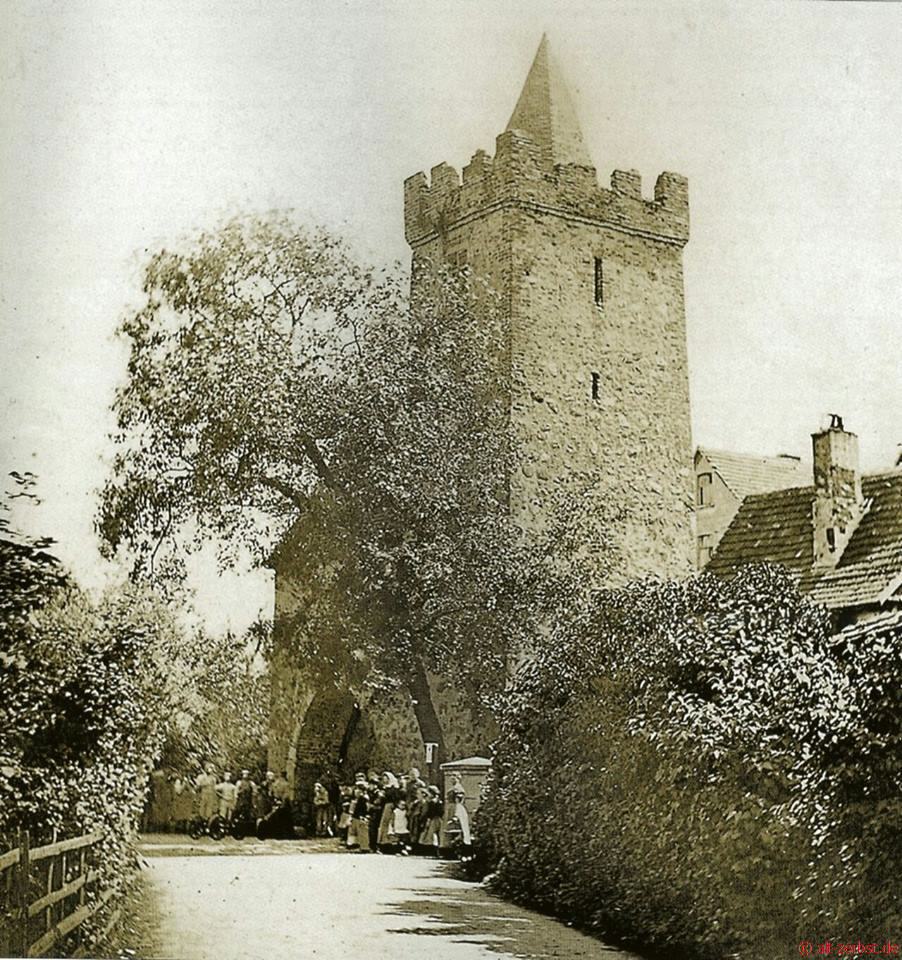 1571 wird der Wehrgang bedacht, nach außen mit Schießscharten, nach innen mit Fachwerk versehen.