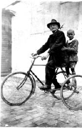 Dieses grün angestrichene Rad hat Jahrzehnte treue Dienste geleistet. In den ersten Jahren mit Vollgummireifen, später luftbereift. Wie viele Tausend Fahrräder war es mit einem Gepäckständer, einen Spatenhalter, einer Schoßkelle, einer Lichtanlage mit Karbid und einer Klingel ausgerüstet.