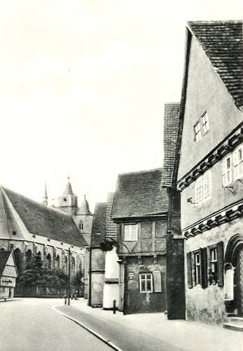 Rund um die Nikolaikirche waren die bekannten alten Marktstätten, wie Schleibank, Holzmarkt, Salzmarkt, Heumarkt usw. Hier standen viele „Verkaufsbuden und Gewandstätten“. Verfallen und weggeräumt entstanden dann rund um den Fischmarkt die bis zum 16. April 1945 gestandenen Häuser.
