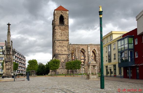 Der Zerbster Roland, ein gotisches Bauwerk, das anfangs des neunzehnten Jahrhunderts erneuert worden ist. Der Roland selbst stammt aus der romanischen Epoche (900-1250).