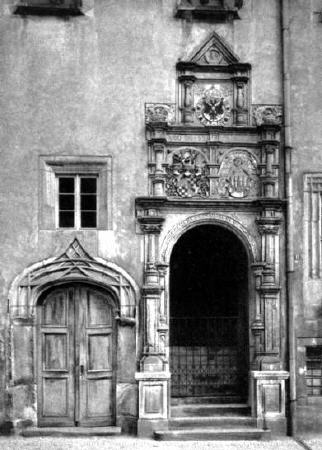 Zu jener Zeit Knabenmittelschule, einst Schöffenhaus, Ratskeller, Innungshaus Baumeister: Ludwig Binder. Auf dem nächsten Bild kann man wunderbar erkennen, an welcher Stelle dieses Portal einst war.