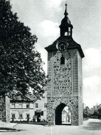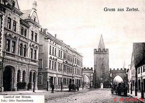 links das Restaurant zur guten Quelle (übrigens zum Unmut vieler Zerbster wurde hier auch kurzzeitig die Bezeichnung "Dornbuger Tor" verwendet.)