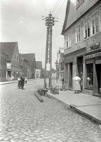 Im Oktober des Jahres 1907 wurde die Errichtung einer elektrischen Blockstation für den vom Markt – Brüderstraße – Mühlenbrücke – Mittelstraße umschlossenen Häuserkomplex unter der Mitwirkung des Unternehmens AEG Berlin geplant.