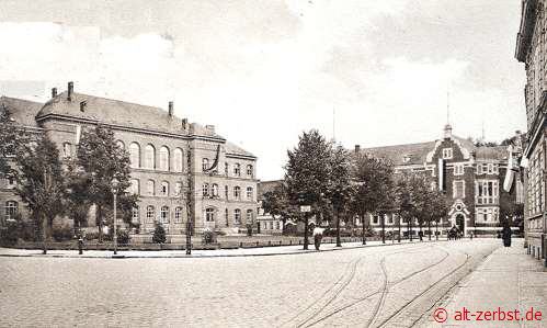 Schon seit 1856 befand sich in der Sackstraße eine Schule mit 6 Klassen, woraus allmählich 9 Klassen wurden. Nach wiederum langen Verhandlungen entschloss man sich im Stadtrat, dass der Bau vor dem Akenschen Tore stattfand. Am 18. Oktober 1889 war die Einweihung der Schule.