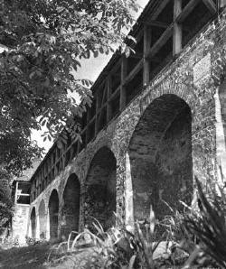 1571 wird der Wehrgang bedacht, nach außen mit Schießscharten, nach innen mit Fachwerk versehen.