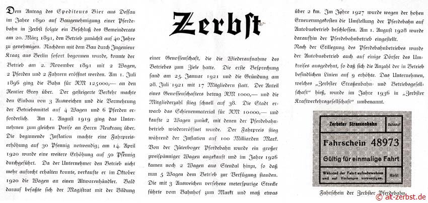 wurde durch die Zerbster ausgiebig dokumentiert. Die Außerbetriebsetzung der Zerbster Pferdebahn war die letzte in Deutschland.