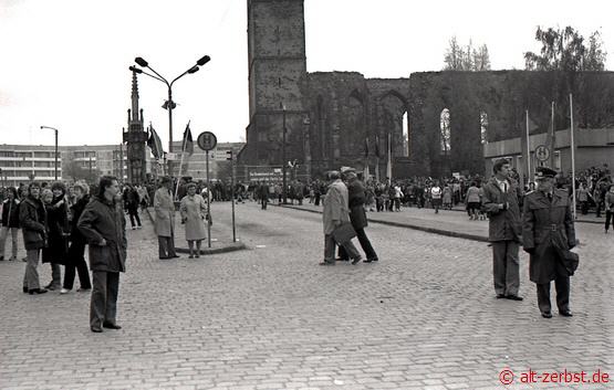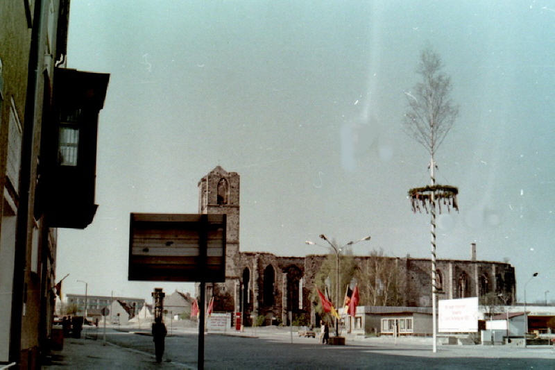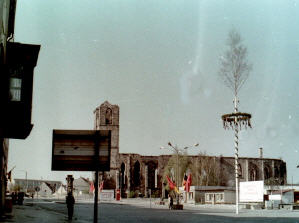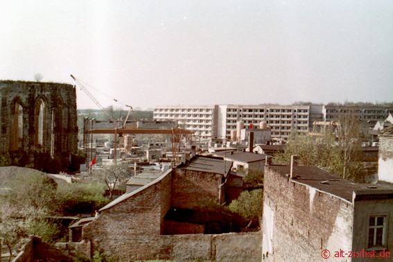 bei der Umbauung der Nikolaikirche mit DDR-Plattenbauten.