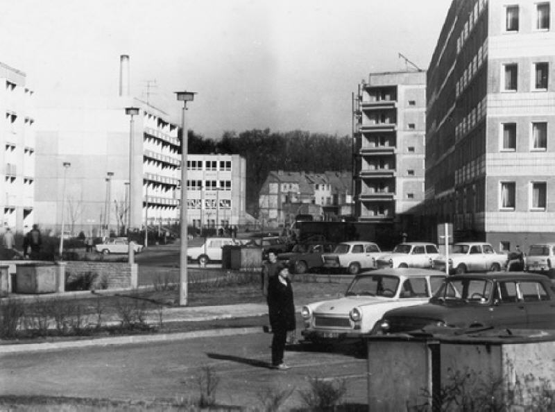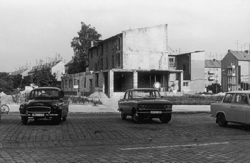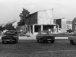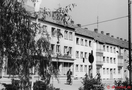 Links Haus der Wohnraumkultur und rechts die HO-Kaufhalle