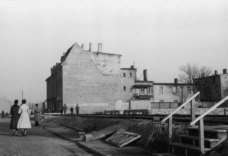 davor steht das Lager für die beliebten "Russenmagazine", dies befand sich in der Mozartstraße. Ein weiteres Lager gab es in Altbuchsland. Wer denkt dabei nicht an die tollen Pralinen und Süßigkeiten? Die nächste Aufnahme schließt links fast genau an dieses Bild an.
