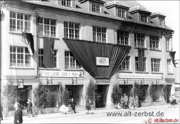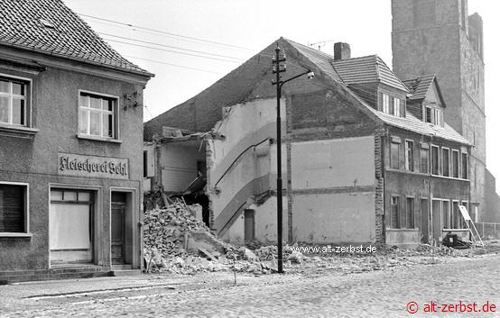 links Fleischerei Sehl, dort gab es die berühmteste Pferdewurst von Zerbst