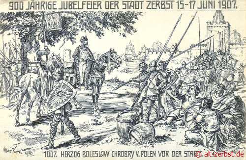 Sie gaben unter anderem die Postkarte heraus, wo der Herzog Boleslaw Chrobry vor der Stadt Zerbst steht.