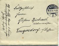 Feldpostbrief Herrn Gustav Biebrach Webermeister Neugersdorf i/Sachsen
