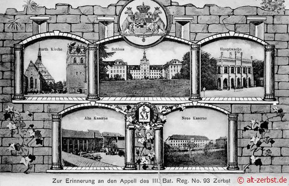 aus den Anfängen des 20. Jahrhunderts "Zur Erinnerung an den Appell des III. Bat. Reg. No. 93 Zerbst"