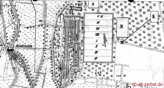 Das Lager besteht aus 48 Baraken jede Barake ist in 2 hälften geteilt und in jeder Hälfte liegen 150 Mann.