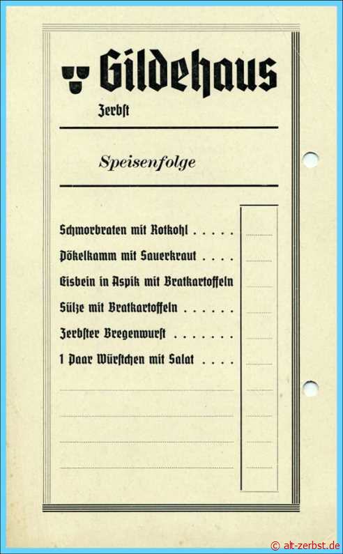 Wer einmal in früheren Jahren Gast in der Gaststätte „Zum Gildehaus“ zu Zerbst war, der konnte das fleißige und geschäftige Treiben des ehemaligen Gastwirtes beobachten.